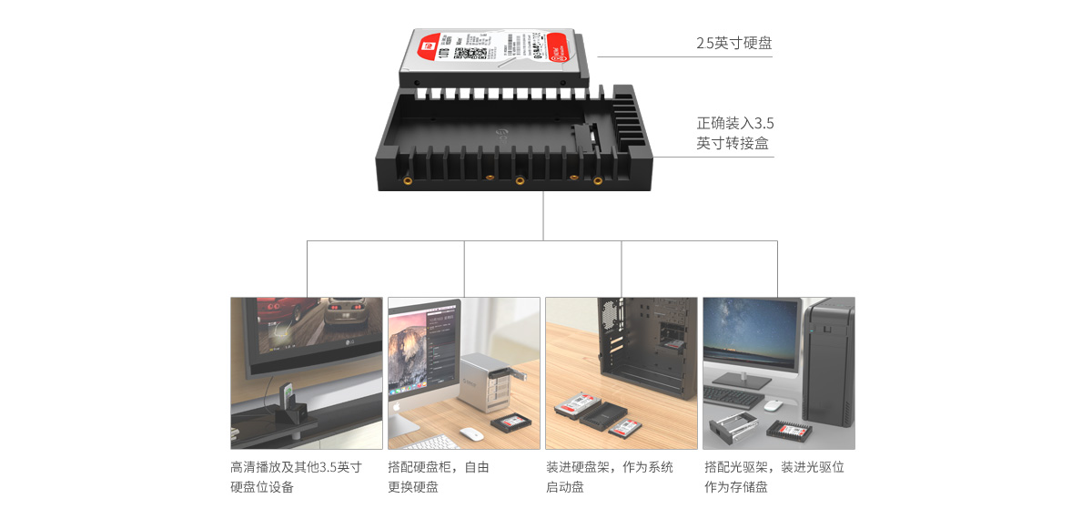 老舊2.5英寸SATA硬盤裝進硬盤轉接盒,立馬變身3.5英寸硬盤,連接硬盤柜、機箱等使用,讓您沉淀已久的舊筆記本硬盤煥發新生。