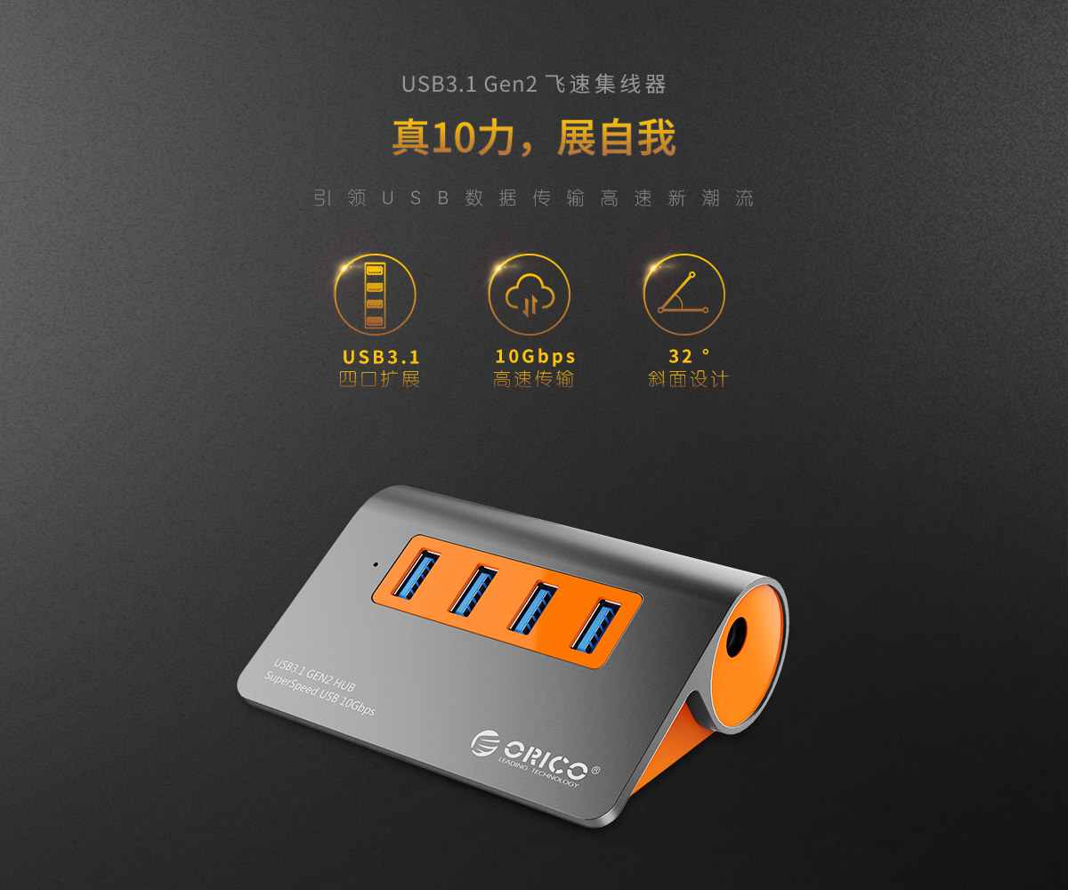 4口USB3.1 Gen2 高速集線器,10Gbps傳輸速率