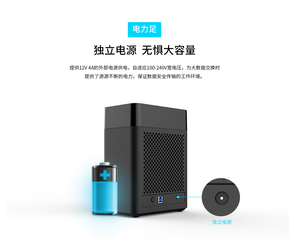 八芯磁吸,3秒拆裝,單盤支持10TB,即插即用,智能休眠,節(jié)能環(huán)保,靜音風(fēng)扇及蜂窩孔散熱,支持UASP協(xié)議。