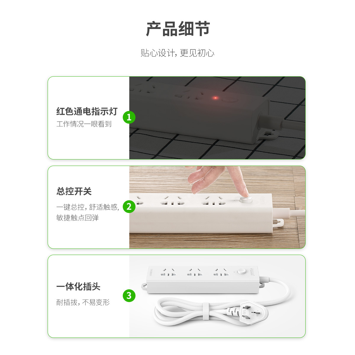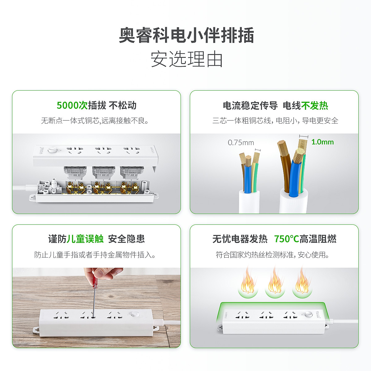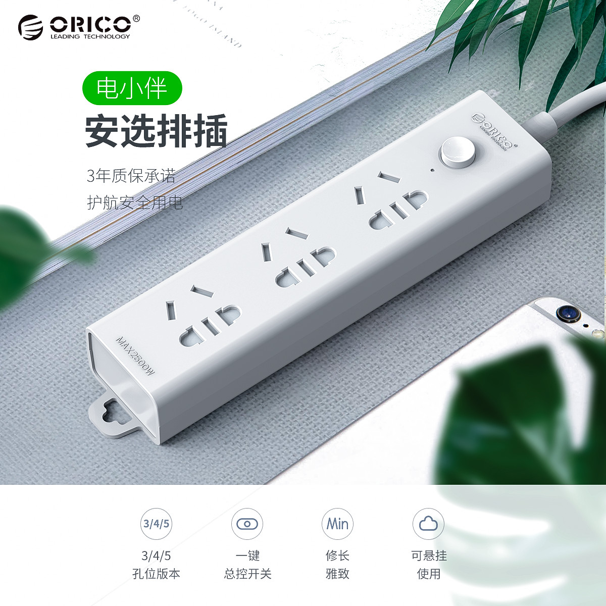 電小伴3AC口國標智能純AC延長線排插