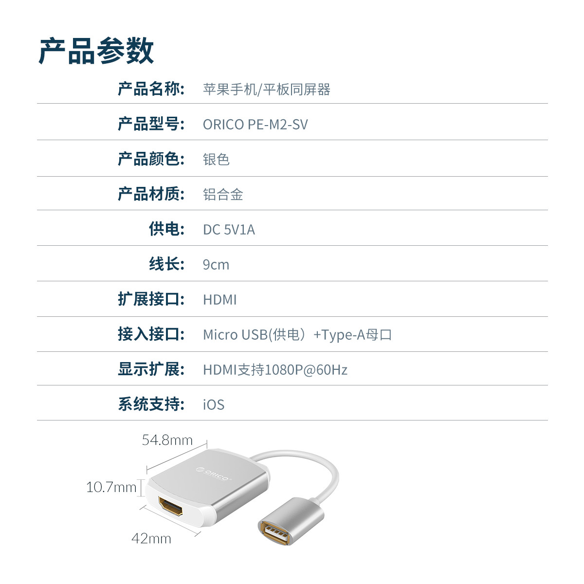 1080P@60HZ高清分辨率,HDMI/VGA雙接口,3.5MM獨立音頻輸出,外接供電,即插即用,鋁合金外殼
