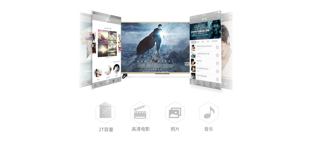 支持2TB硬盤海量存儲,電影、音樂、照片無憂存。