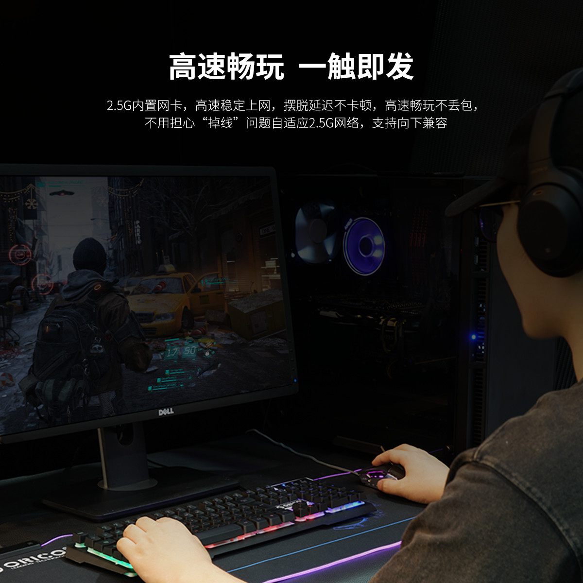 2.5G內置網卡,高速穩定上網,擺脫延遲不卡頓,采用風琴導熱片散熱設計,快速散熱,需在Orico官網下載驅動安裝