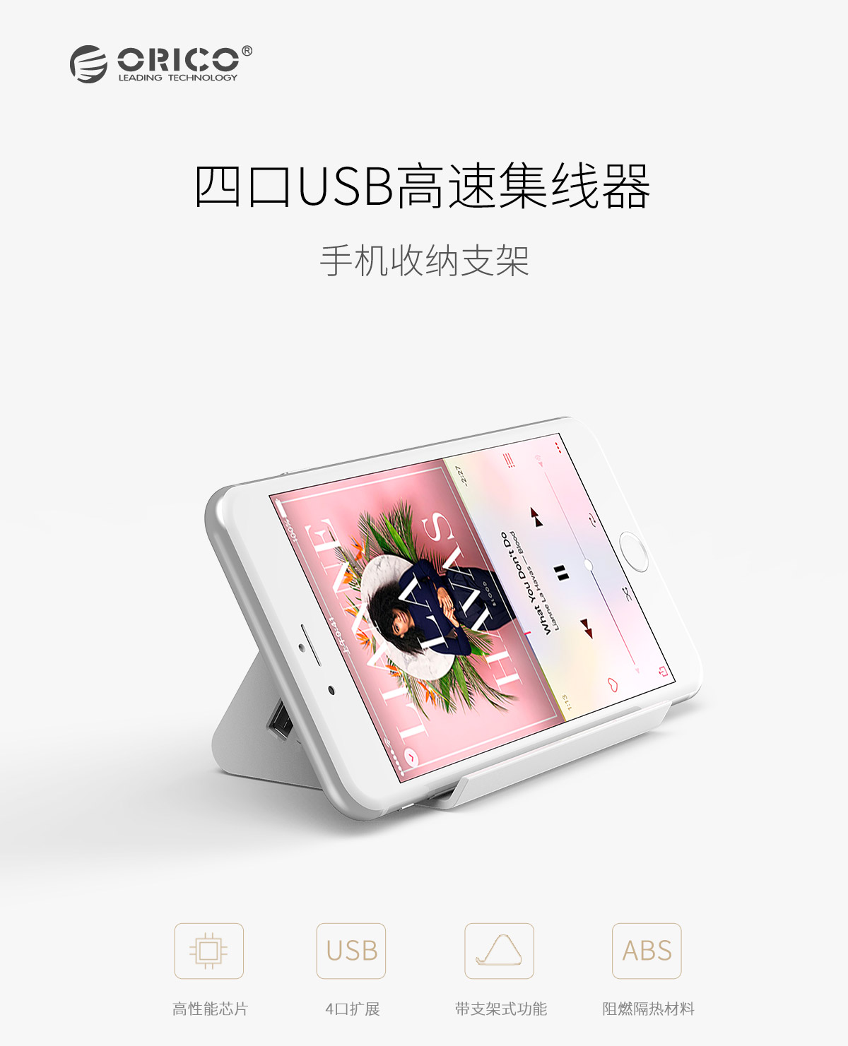 4口USB擴(kuò)展 帶支架功能 ABS耐高溫材質(zhì) 精細(xì)做工