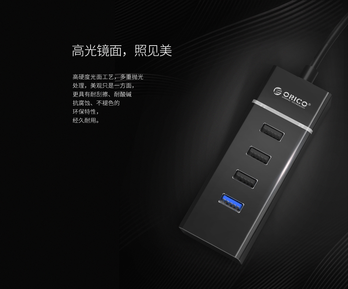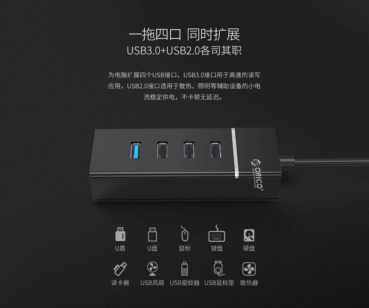 連體設(shè)計 30cm數(shù)據(jù)線長 內(nèi)透LED指示燈 3+1USB接口擴展