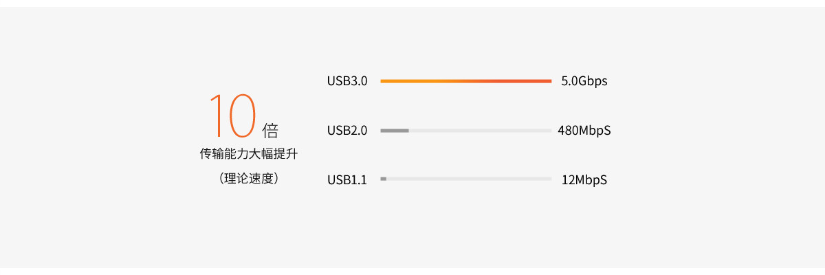USB3.0作為全新的高速接口擁有相比USB2.0十倍傳輸能力,供電能力也提高近一倍為我們數(shù)碼外設擴展提供了穩(wěn)定的方案。在高清無損影音海量信息頻繁交互的年代,USB3.0將為您節(jié)省更多時間經濟成本。