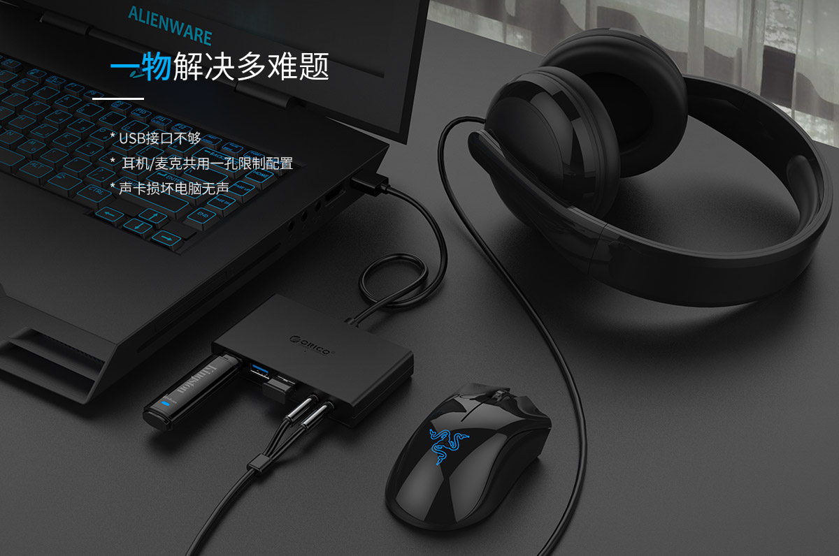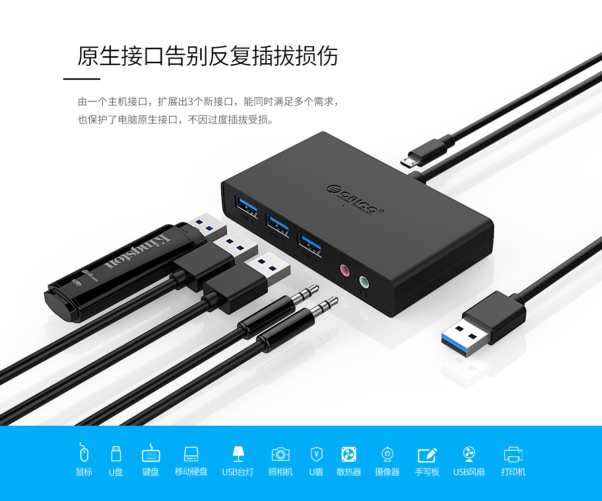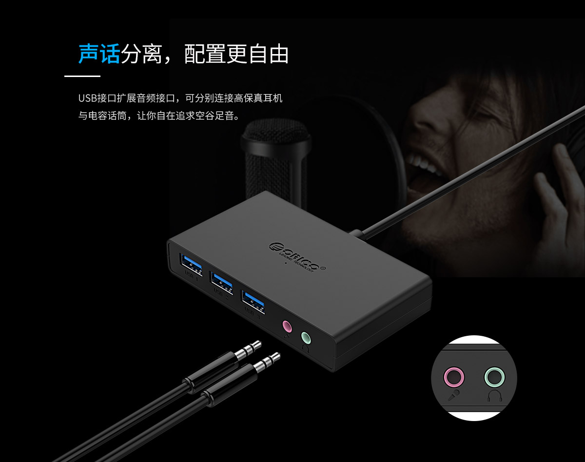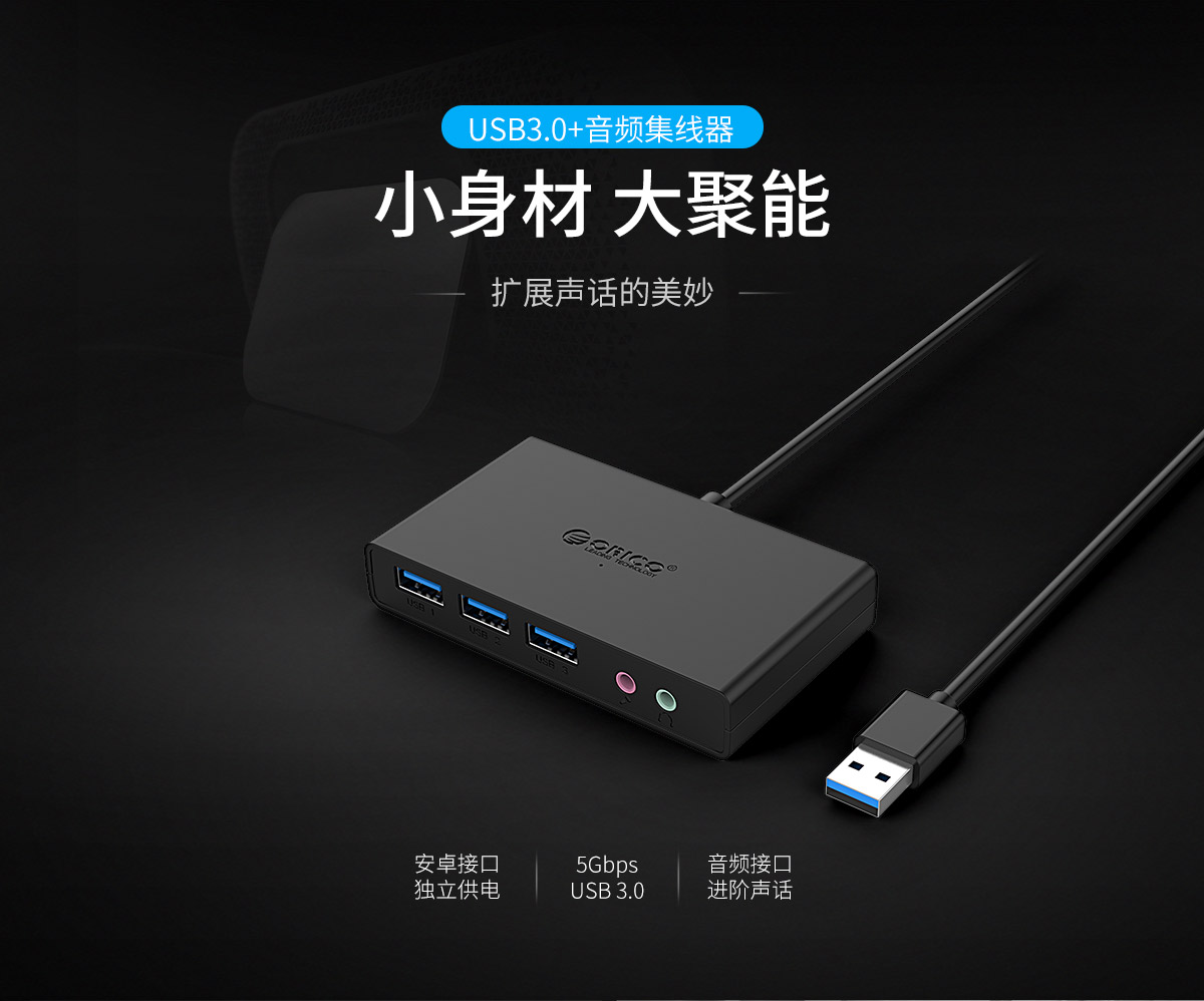 3口USB3.0擴(kuò)展 連體設(shè)計(jì) 帶音頻和麥克風(fēng)接口 多種可選線長(zhǎng)