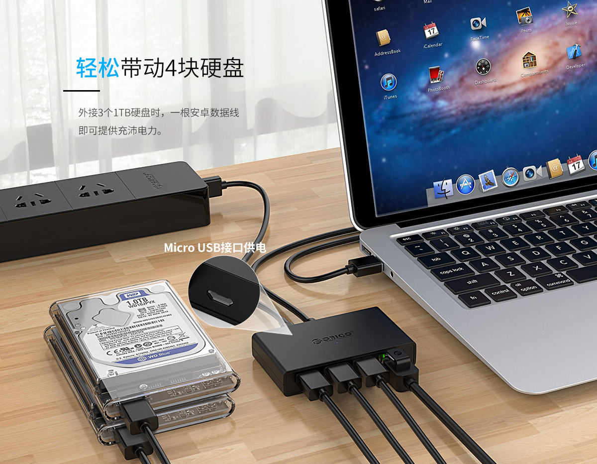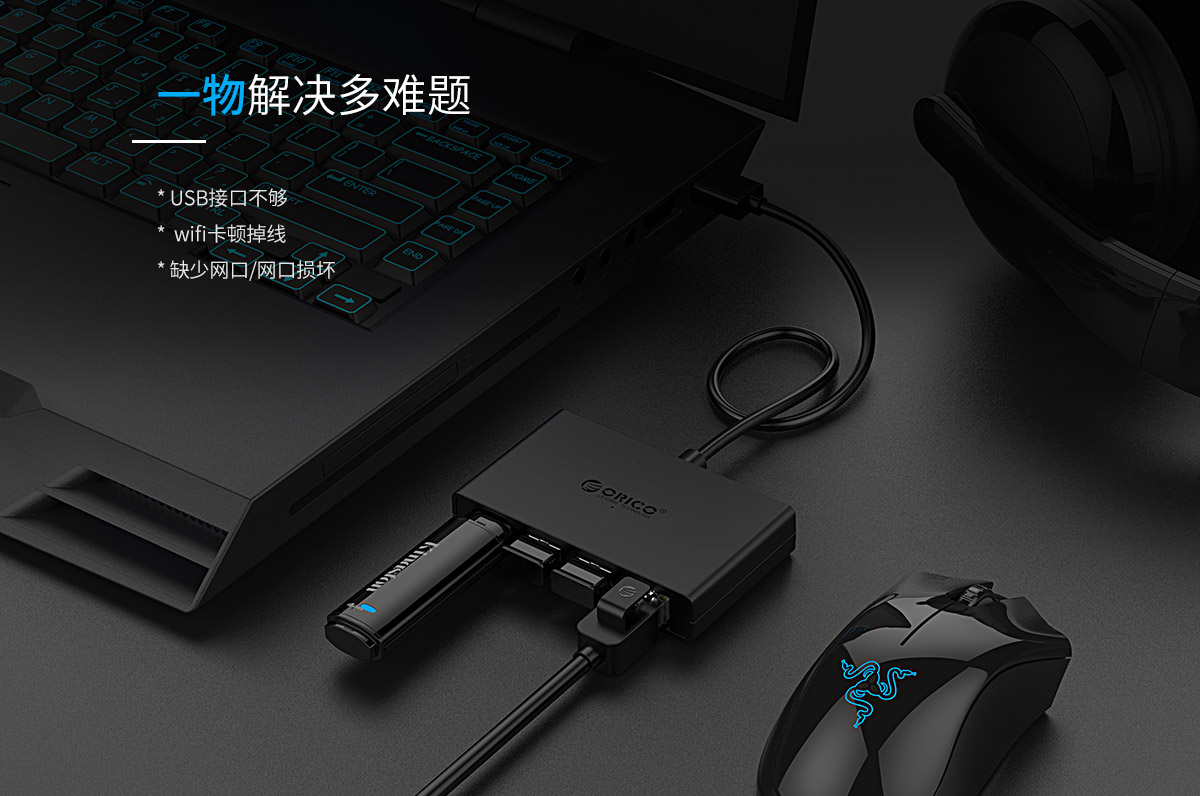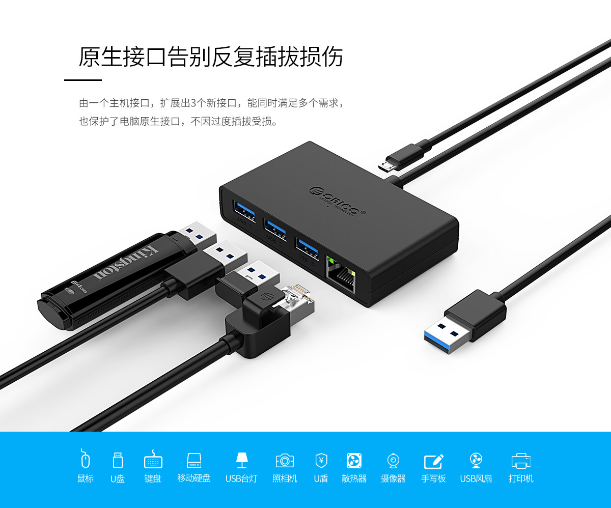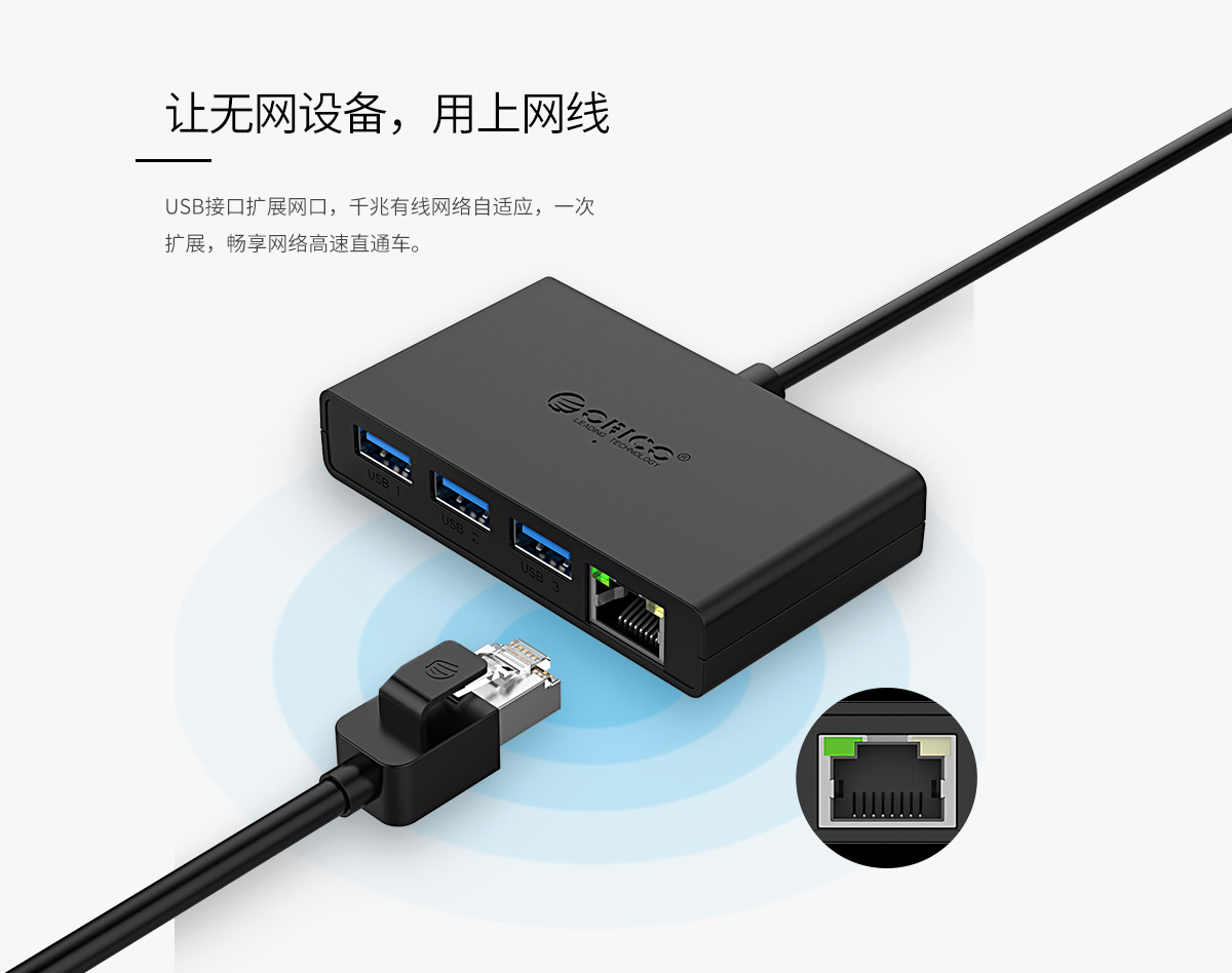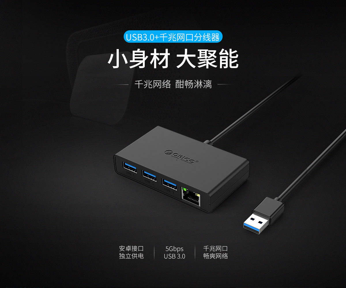 3口USB3.0集線器帶千兆網(wǎng)口,外置電源獨(dú)立供電