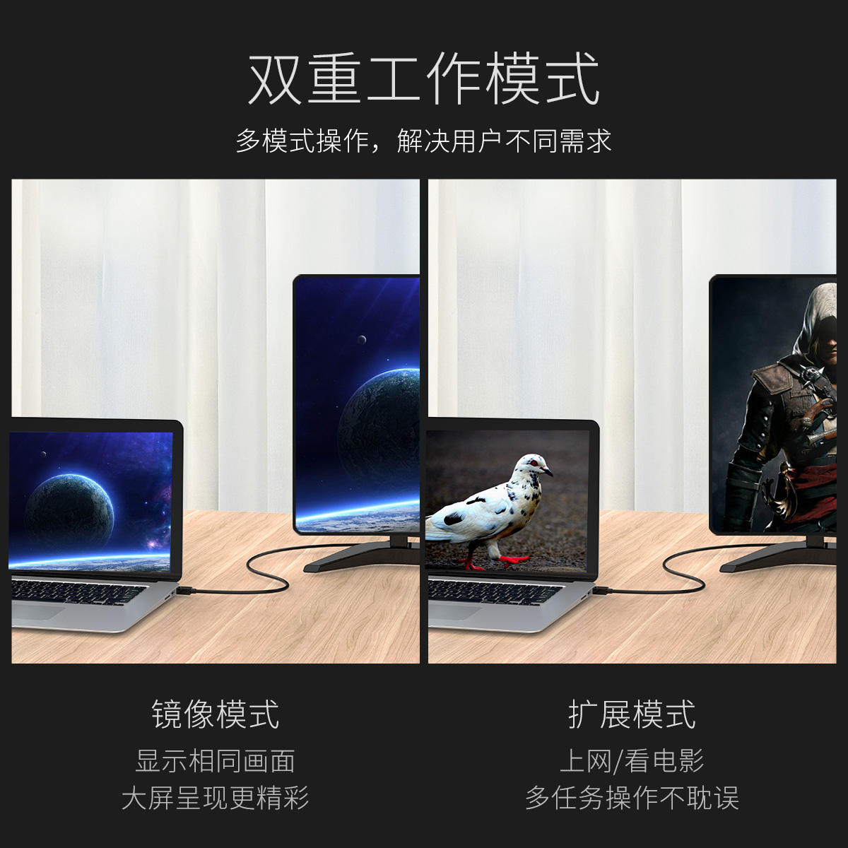 4K畫質,21.6Gbps高速帶寬,音畫同步輸出,廣泛兼容
