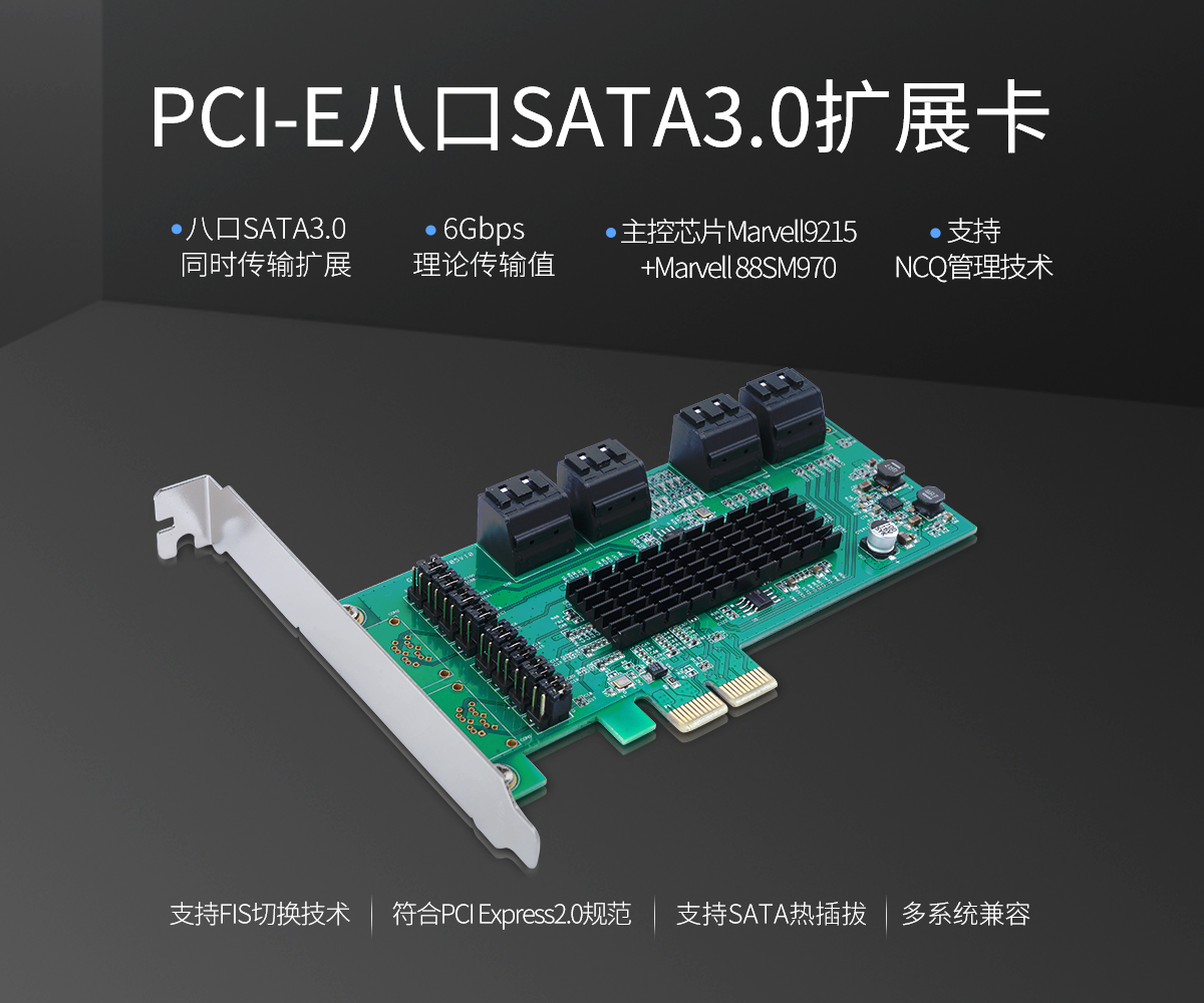 雙芯片8口SATA3.0 PCI-E 擴展卡,兼容PCI-E X1/4/8/16