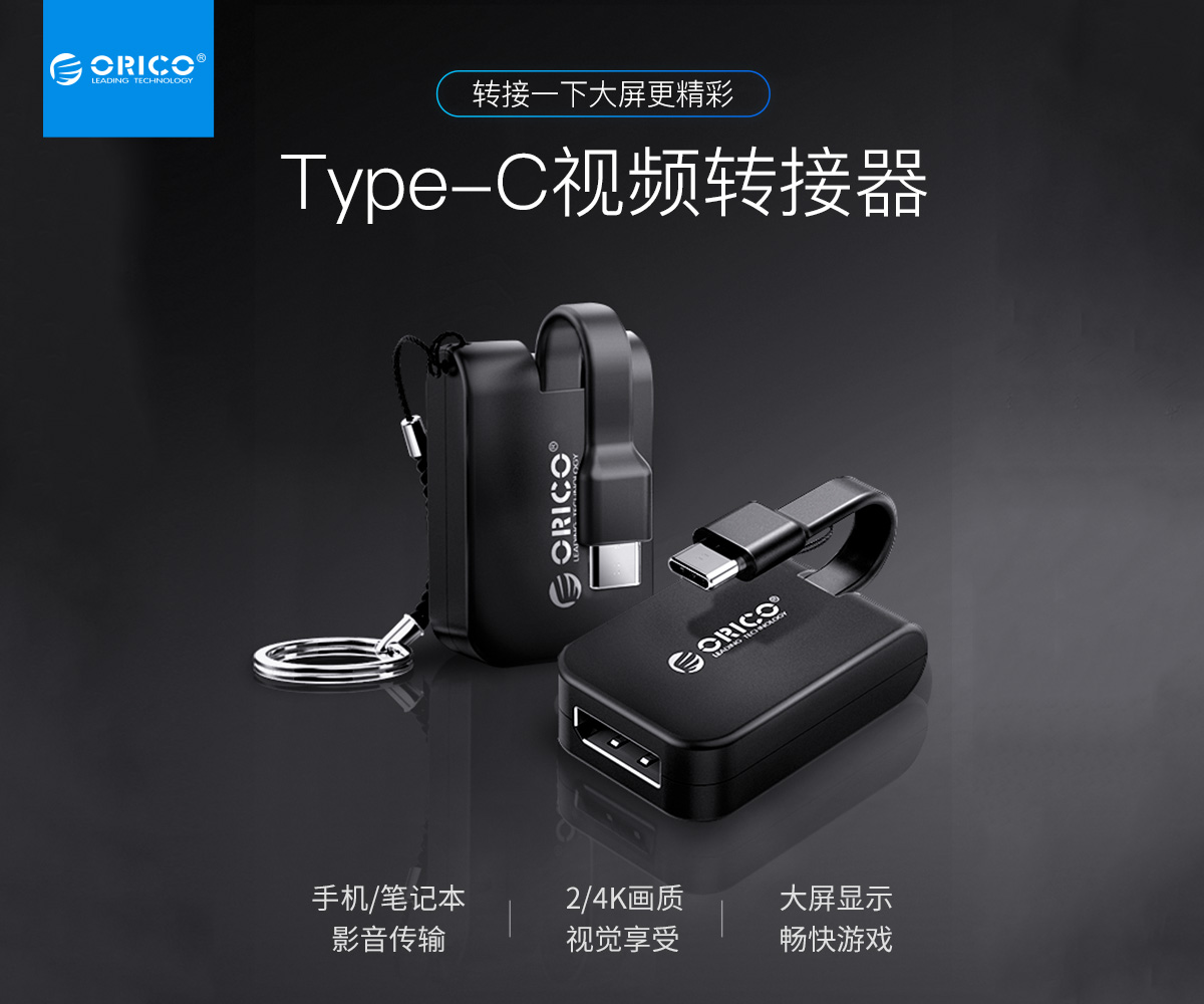 Type-C轉(zhuǎn)DP公對(duì)母視頻轉(zhuǎn)接頭帶掛環(huán)