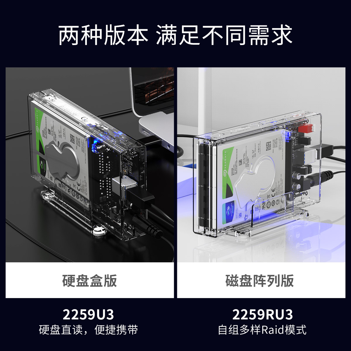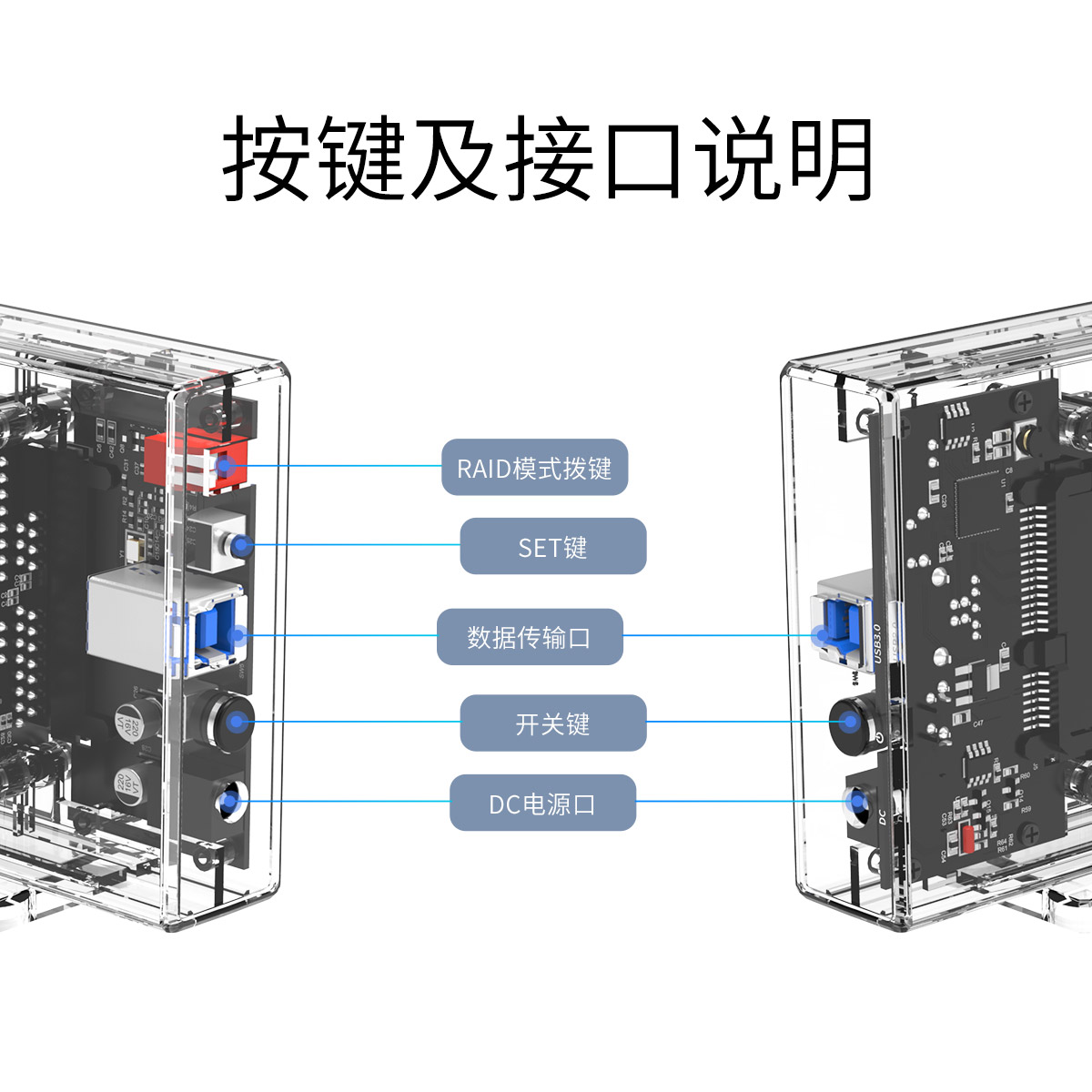 2.5英寸帶raid雙盤(pán)位透明硬盤(pán)盒