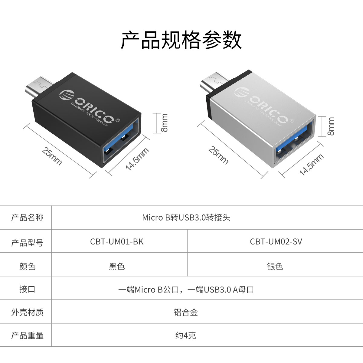 Micro B 轉(zhuǎn)USB3.0 A銀色OTG轉(zhuǎn)接頭