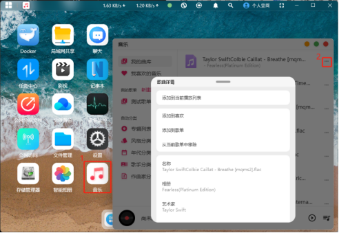 點擊音樂文件右邊的“...”,即可對音樂文件進行添加到當前播放列表、添加到喜歡、添加到歌單和從當前歌單中移除等操作。