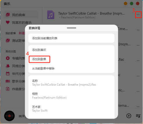 點擊【...】可以將音樂添加到喜歡,或者自建歌單。