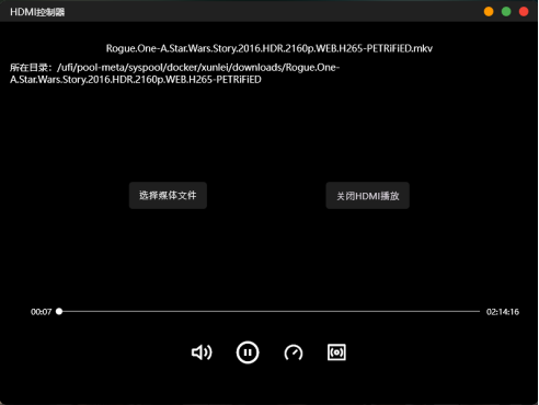 在HDMI控制器界面,可以點擊底部的功能按鈕對音視頻輸出做靜音、暫停、倍速播放和選擇音軌的操作。