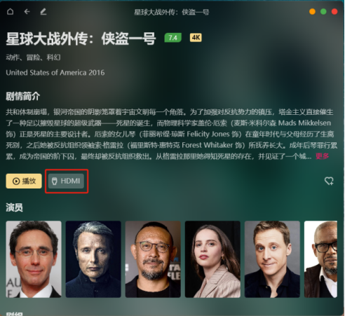 點擊一個海報進到詳情之后,點擊“HDMI”彈出HDMI控制器。